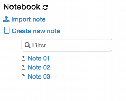 You can filter them by name using the input text form. You can also create a new note, refresh the list of existing notes
