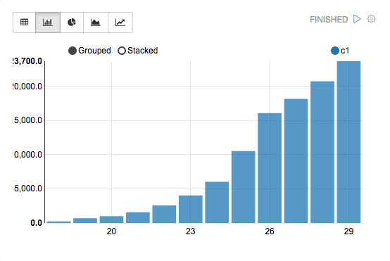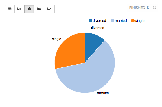 Some basic charts are already included in Apache Zeppelin. Visualizations are not limited to Spark SQL query, any output from any language backend can be recognized and visualized.