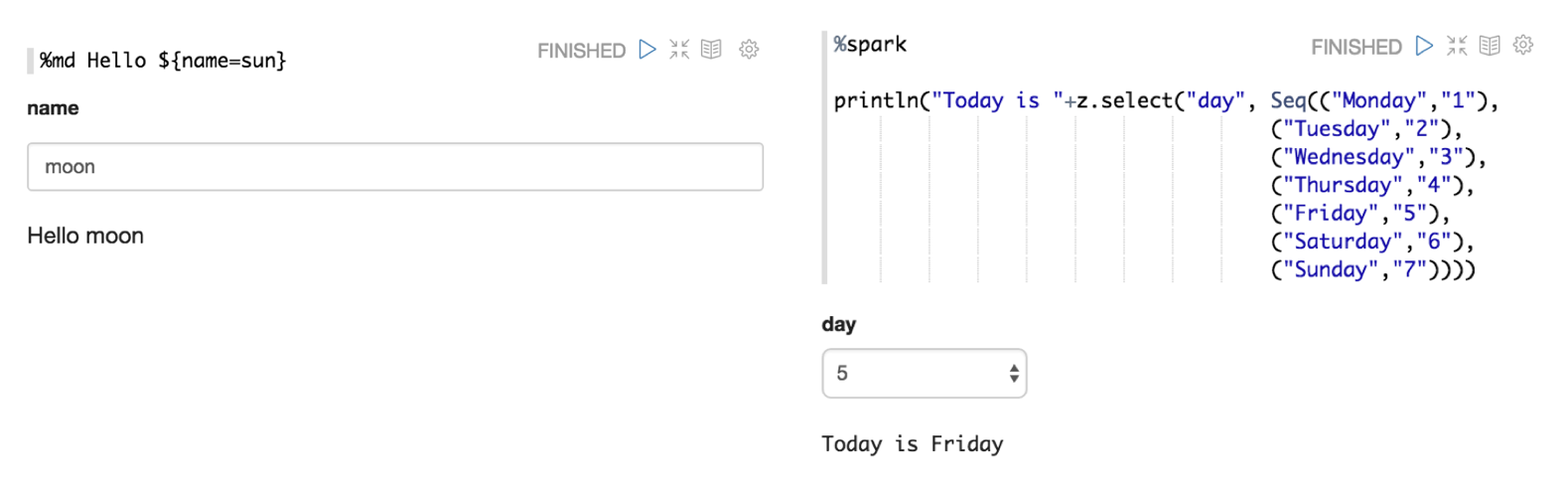 Apache Zeppelin can dynamically create some input forms in your notebook.