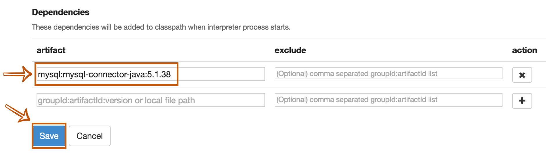 The last step is Dependency Setting. Since Zeppelin only includes PostgreSQL driver jar by default, you need to add each driver's maven coordinates or JDBC driver's jar file path for the other databases.