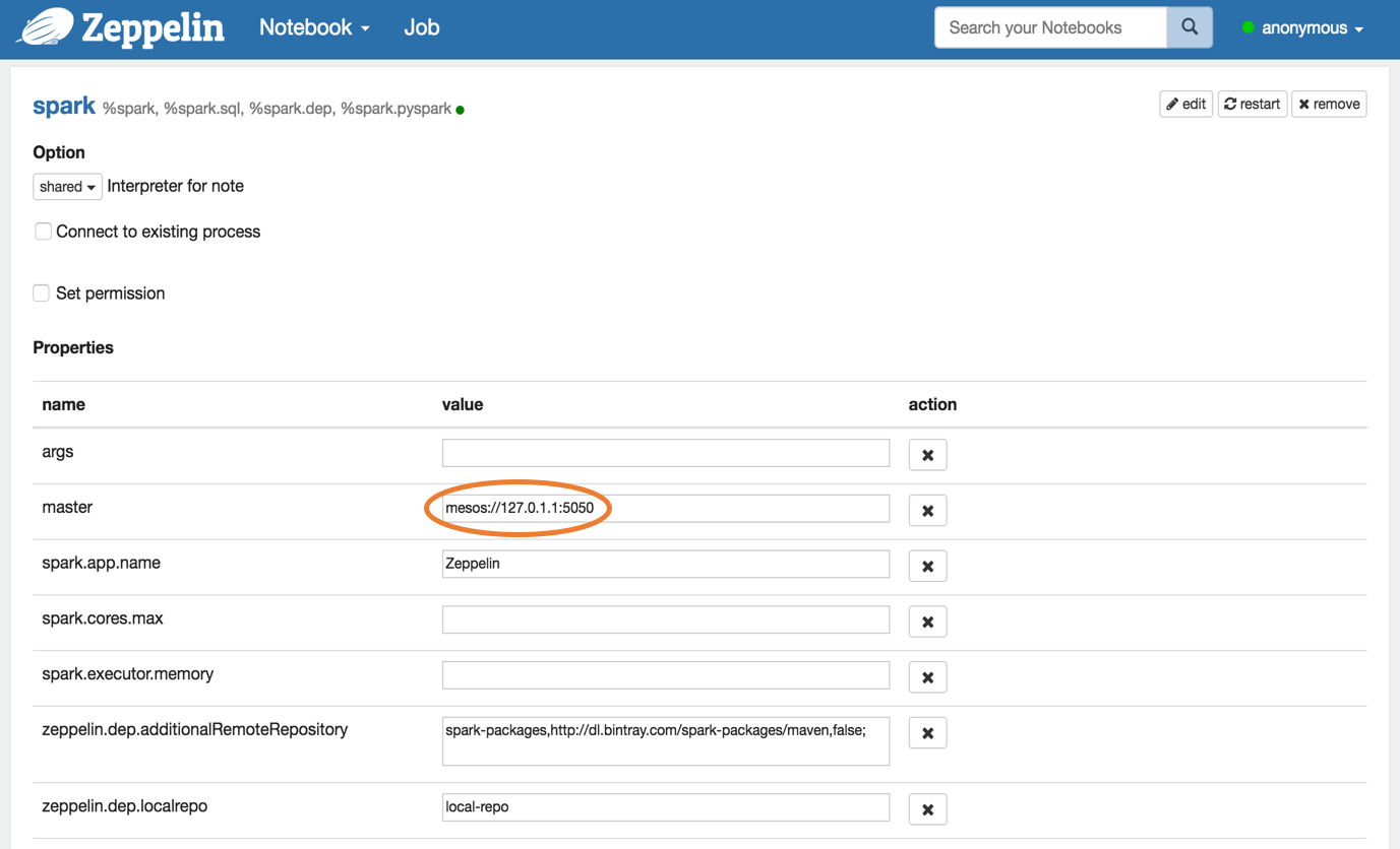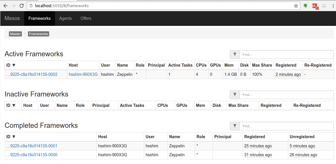 • If you have problem with mesos master, try mesos://127.0.0.1 instead of mesos://127.0.1.1