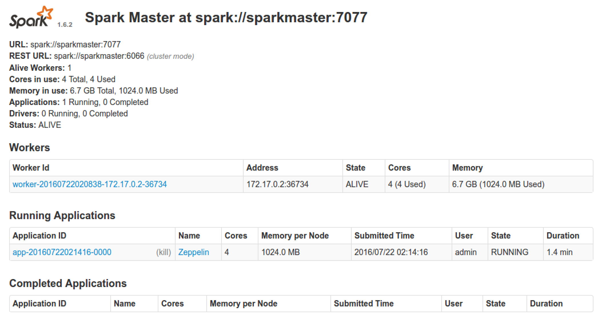 Apache Spark has supported three cluster manager types(Standalone, Apache Mesos and Hadoop YARN) so far. This document will guide you how you can build and configure the environment on 3 types of Spark cluster manager with Apache Zeppelin using Docker scripts. So install docker on the machine first.