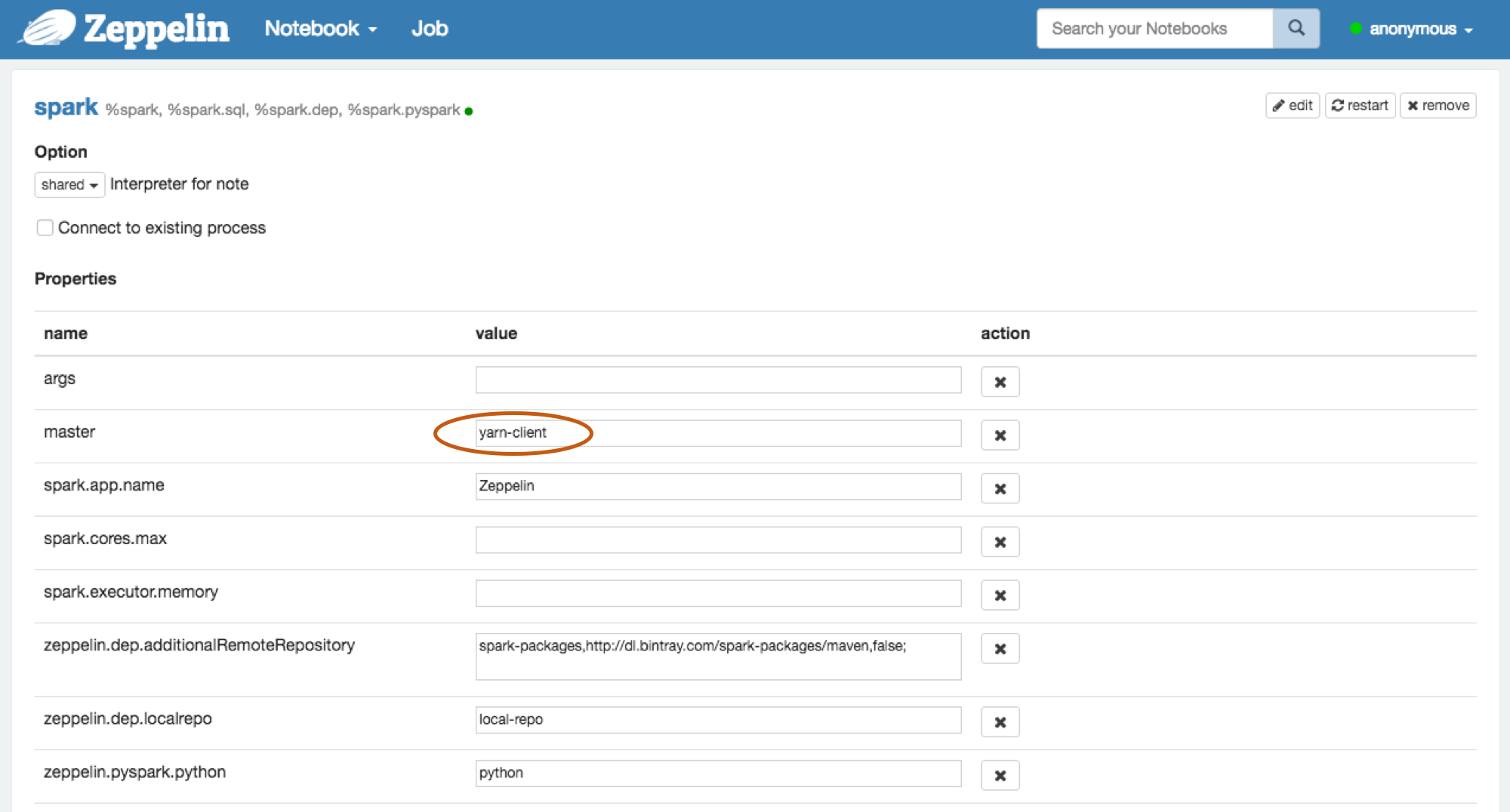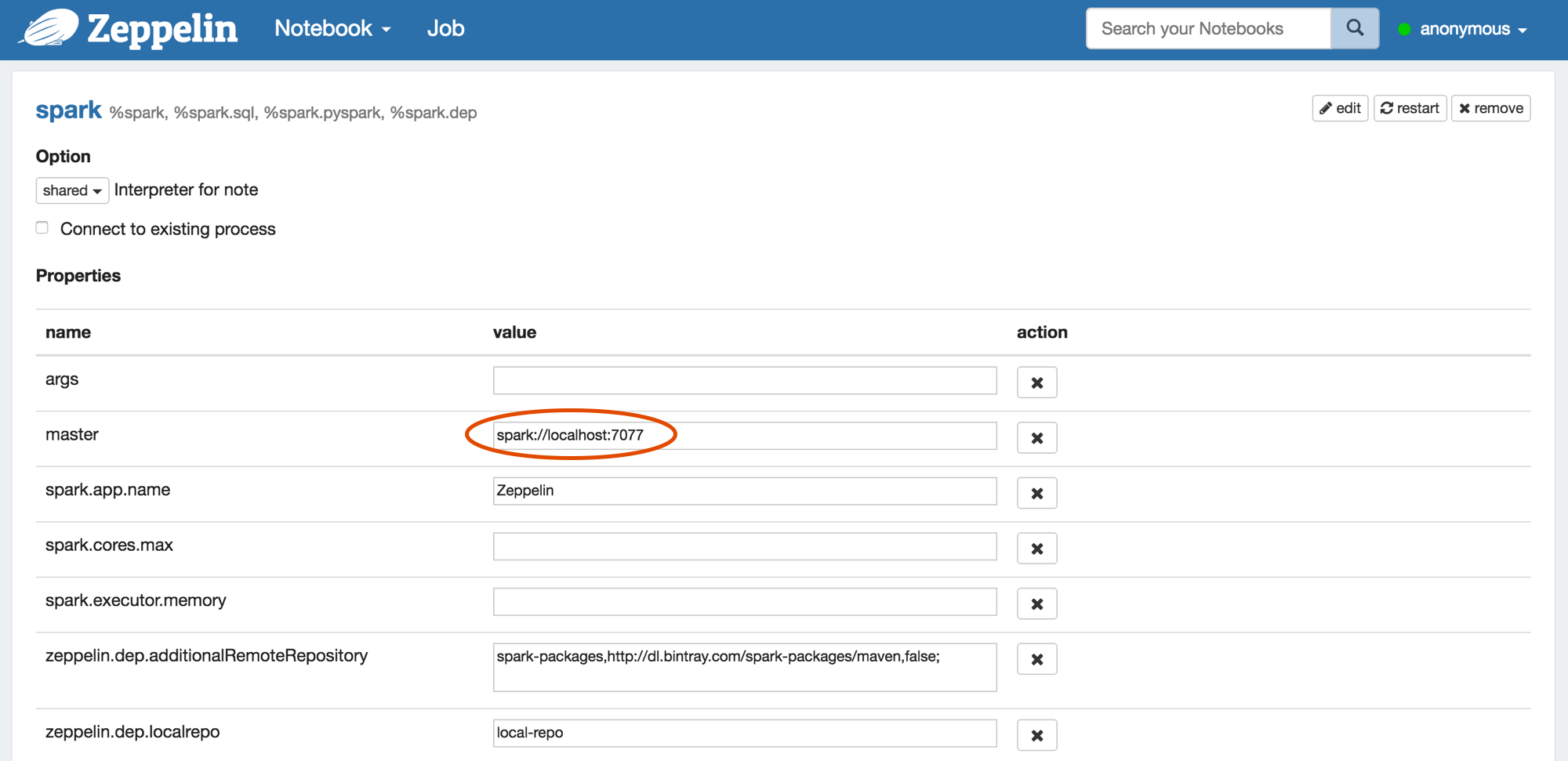 Note : Since Apache Zeppelin and Spark use same 8080 port for their web UI, you might need to change zeppelin.server.port in conf/zeppelin-site.xml.
