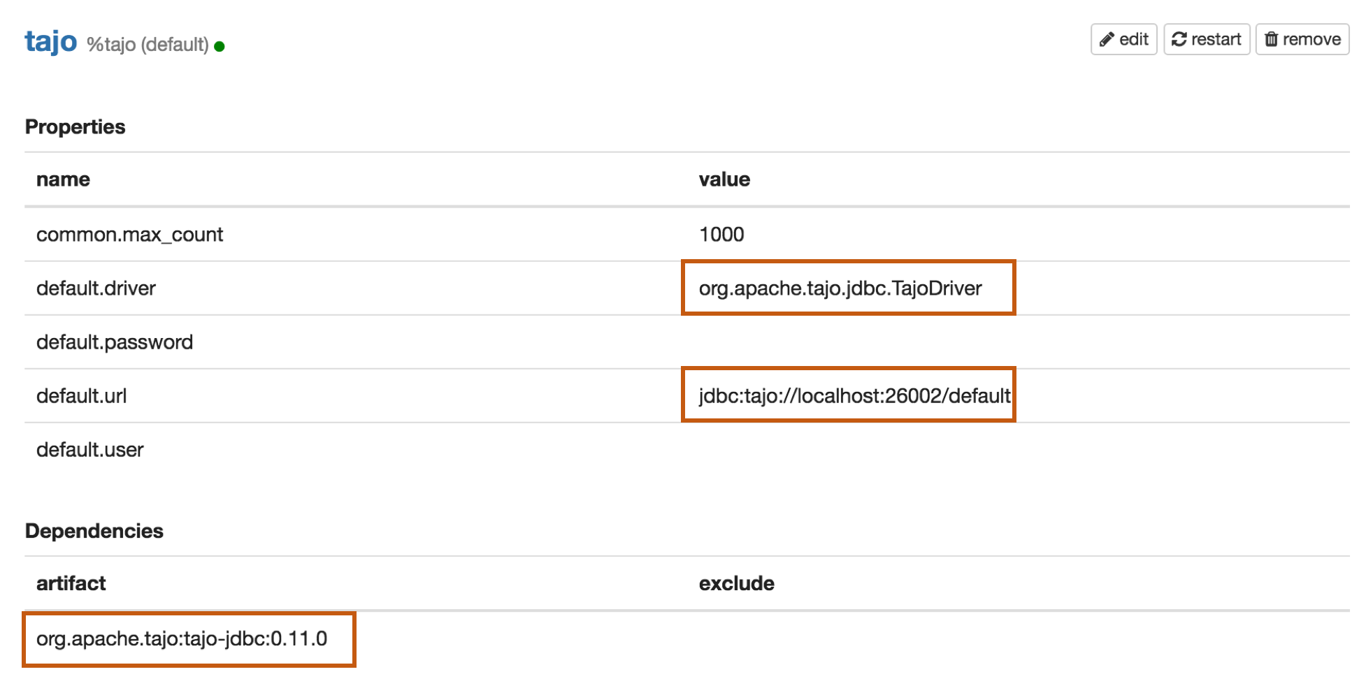 | default.driver | org.apache.tajo.jdbc.TajoDriver |